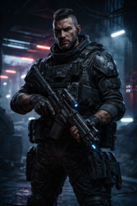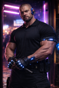 - Cyber arms – gives him +1 action if it includes his arms